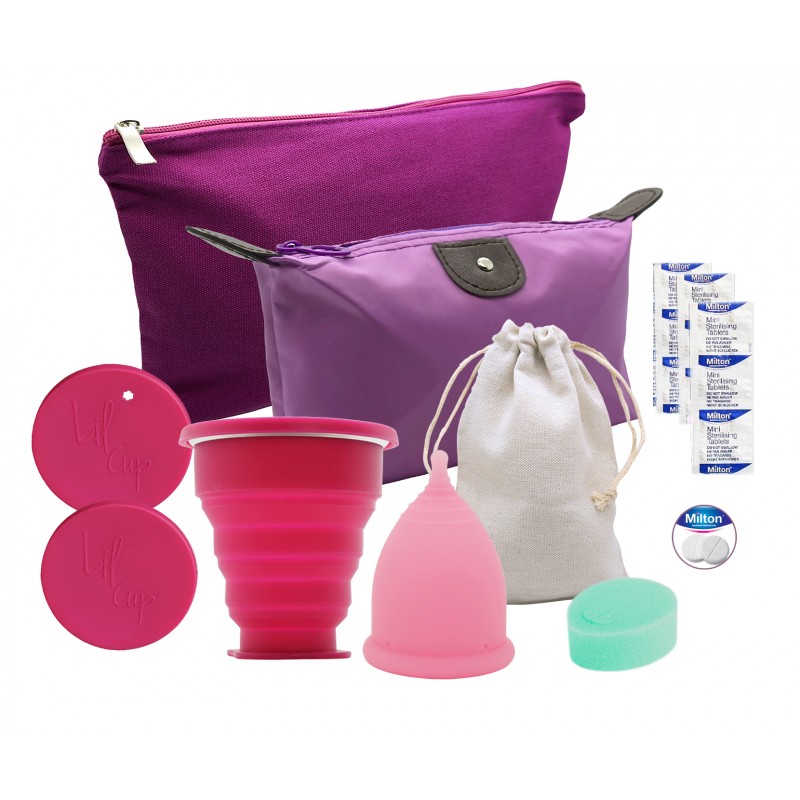 Balíček obsahuje: 1ks kalíšek LilCup Joy s návodem v ochranném pytlíčku + multifunkční sterilizační kelímek Lilcup s 2mi víčky + 10 mini Milton sterilizačních tablet + cestovní taštička+úložná taštička+tampon